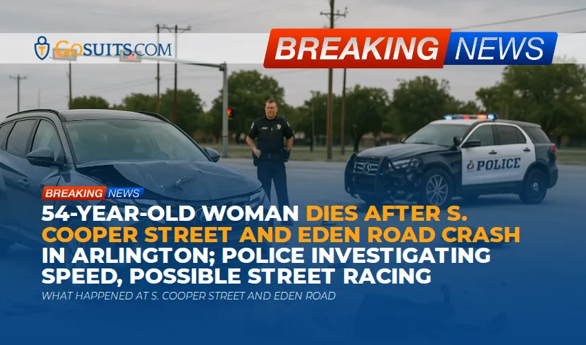 Shortly after 12:30 p.m. on Friday, Arlington officers responded to a major two-vehicle crash at the intersection of S. Cooper Street and Eden Road in south Arlington. According to Arlington Police, a 54-year-old woman driving a 2022 Hyundai Tucson was severely injured at the scene and later died at a nearby hospital. A man driving a 2025 Mercedes-Benz C30 was also injured and hospitalized. Identities have not been publicly released as officials work to notify next of kin.