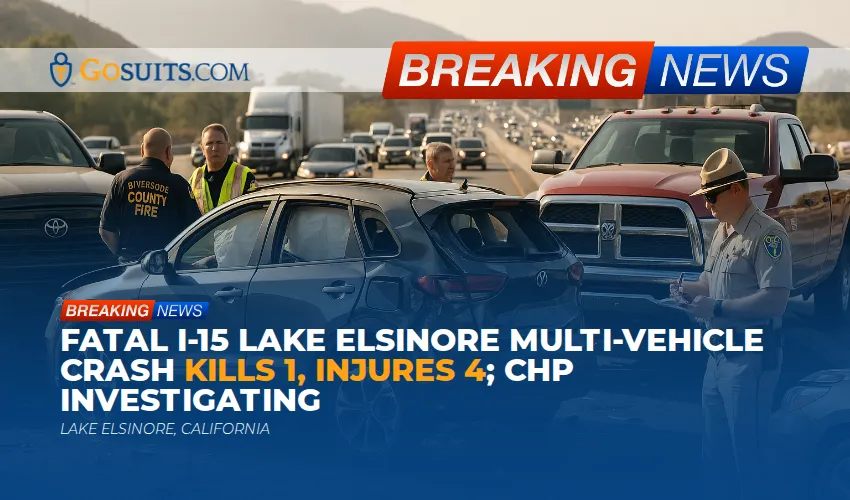 That northbound segment serves drivers transitioning from central Lake Elsinore shopping areas and neighborhoods near the lake up toward the Temescal Valley and Corona. Afternoon traffic volumes are typically heavy there, and moderate grades, lane changes near on-ramps, and trailer-towing traffic can all amplify risk when a sudden stop occurs.
