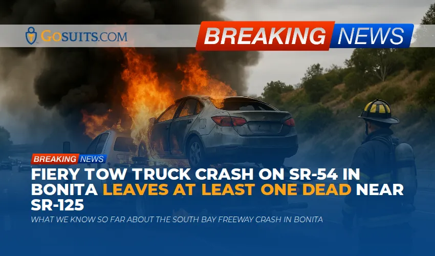 On Saturday afternoon, a devastating crash occurred on the eastbound South Bay Freeway, State Route 54, in Bonita just east of National City. According to information relayed by the California Highway Patrol at the scene, the wreck was reported at approximately 3:34 p.m. on eastbound SR-54, west of the SR-125 Expressway. Witnesses indicated a tow truck was picking up a vehicle on the right-hand shoulder when a car collided into the rear of the truck. The car caught fire, and the vehicle on the tow truck also became engulfed. Two eastbound lanes, lanes 2 and 3, were blocked while emergency crews responded, and a SigAlert was issued. The San Diego County Medical Examiner’s Office was requested at about 4:43 p.m. At least one person lost their life. Authorities have not yet publicly released the identity of the deceased.
