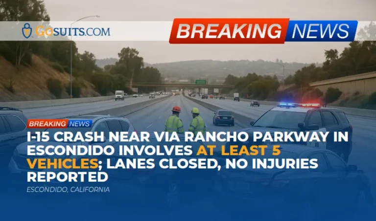 Early Tuesday morning in Escondido, a crash involving at least five vehicles led to the closure of multiple lanes on southbound Interstate 15 near Via Rancho Parkway. The initial pileup was reported shortly before 5:30 a.m. CHP noted that at least five vehicles were involved and the investigation into the cause was underway. No injuries were immediately reported at the scene. Several lanes were closed to allow emergency crews to work, and the Del Lago HOV on-ramp to southbound I-15 was temporarily shut down.
