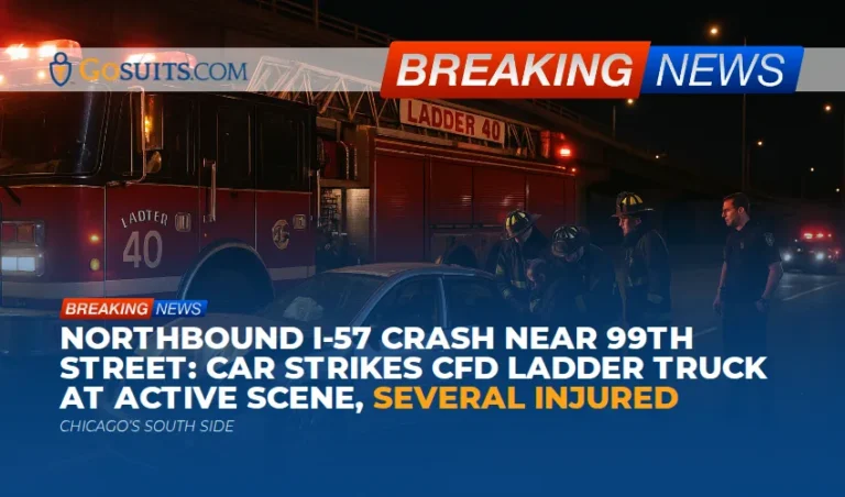 Early Sunday morning, a silver Chevrolet struck a Chicago Fire Department ladder truck on northbound I-57 near 99th Street while the fire apparatus was already on scene for a prior crash. According to the Illinois State Police, the ladder truck was stationary in the left and center lanes with emergency lights activated when the Chevrolet failed to slow down and hit the front of the truck at about 2:30 a.m. Several people were transported to nearby hospitals. As of the initial report, authorities had not released the number of injured people or the extent of their injuries. All northbound lanes reopened by about 4:30 a.m.