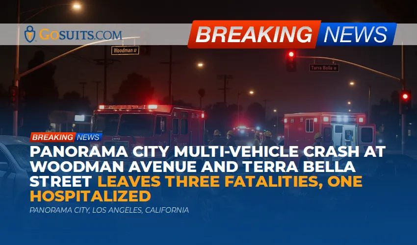 A multi-vehicle collision in Panorama City on Friday night resulted in three fatalities and one additional person transported to the hospital. The crash involved three vehicles and occurred around 9:30 p.m. near Woodman Avenue and Terra Bella Street. According to information shared by the Los Angeles Fire Department, three people were pronounced dead at the scene. A 35-year-old man was trapped in a vehicle, extricated by responders, and taken to a local hospital in unknown condition. As of this report, the cause of the crash has not been determined, and details about contributing factors remain unclear.