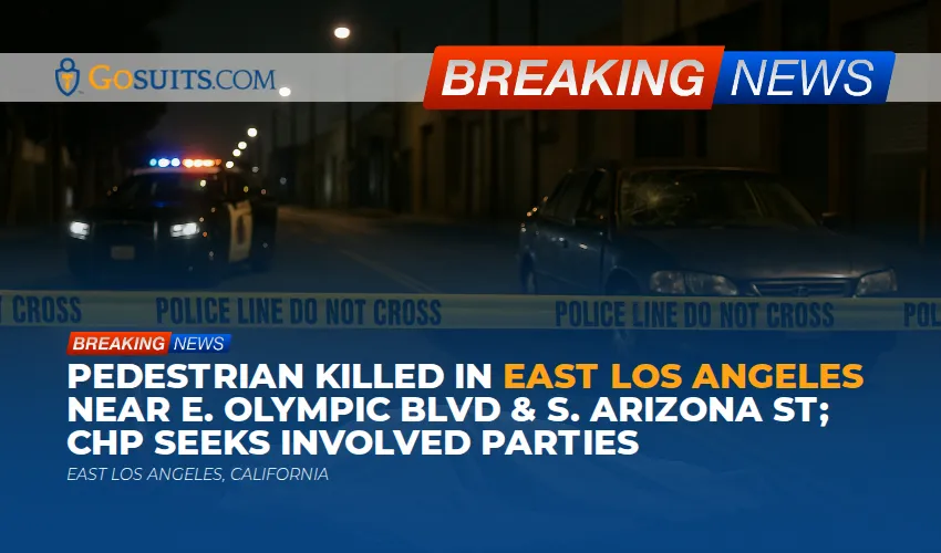 Late Monday night, around 11 p.m., a person was struck and killed while crossing the street near E. Olympic Boulevard and S. Arizona Street in East Los Angeles. According to the California Highway Patrol, officers were called about an individual lying in the roadway and the person was pronounced dead at the scene. The victim has not been publicly identified as of this writing. Video from the scene reportedly showed a nearby vehicle with significant damage, and CHP has stated it is looking for those involved in the crash. Details about the events leading up to the impact have not been released.