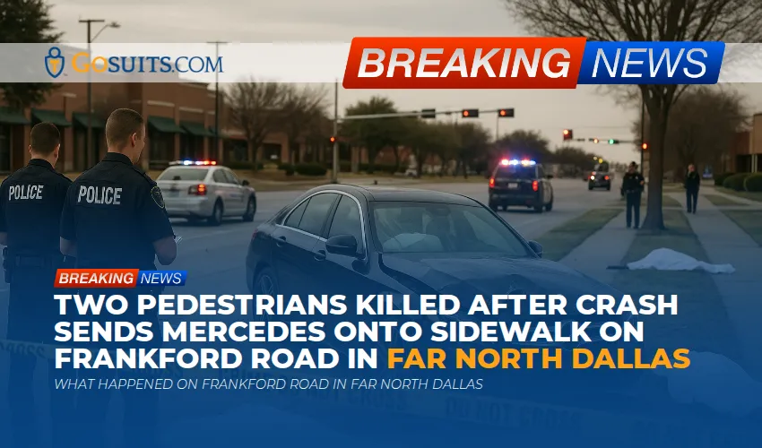 Shortly before 6 p.m. on a Thursday evening in Far North Dallas, a two-vehicle crash at Frankford Road ended in tragedy. According to statements from officers at the scene, a black Mercedes traveling east on Frankford collided with a white Nissan traveling south. The impact sent the Mercedes onto the sidewalk, where it struck two men who had been waiting to cross. Both pedestrians, described as being in their 40s, were transported to a local hospital and later died. The male driver of the Mercedes and the female driver of the Nissan were hospitalized with non-life-threatening injuries. A third person involved was not injured. Frankford Road was closed for several hours during the investigation and later reopened.