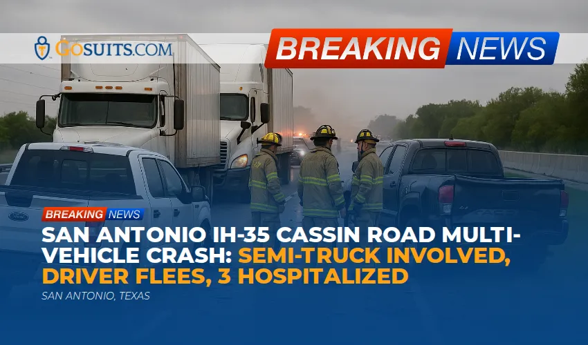Early Saturday around 6 a.m., lanes on Interstate 35 Southbound near the Cassin Road bridge on San Antonio’s South Side were shut down after a serious multi-vehicle collision. San Antonio Police Department officers reported that a Ford F-150 traveling at a high rate of speed rear-ended a Toyota Tacoma in the 9000 block of IH-35 Southbound. The force pushed the Tacoma into a grassy median and onto an access road. The F-150 then struck a metal barrier on the bridge, blocking two lanes. Moments later, a semi-truck crashed into the back of the F-150. According to authorities, the driver of the Ford F-150 left the area before emergency crews arrived. Two passengers from the pickup, a 25-year-old man and a 17-year-old, and the 37-year-old driver of the Tacoma were transported to a nearby hospital for treatment.