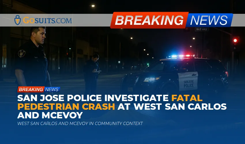 A driver struck and killed a pedestrian early Friday morning near West San Carlos Street and McEvoy Street in San Jose. According to a police news release, the collision occurred around 1:40 a.m. The initial investigation indicates a man driving a 2006 Toyota pickup was traveling westbound on West San Carlos when he hit a man who was crossing the roadway on foot. Police noted the pedestrian was not in a crosswalk at the time. The pedestrian was taken to a local hospital and was later pronounced deceased. The driver remained at the scene and cooperated with investigators. The Santa Clara County Medical Examiner-Coroner’s Office will confirm and publicly release the person’s identity after next of kin notifications. Anyone with information has been asked to contact the San Jose Police Department Traffic Investigations Unit by email or phone.
