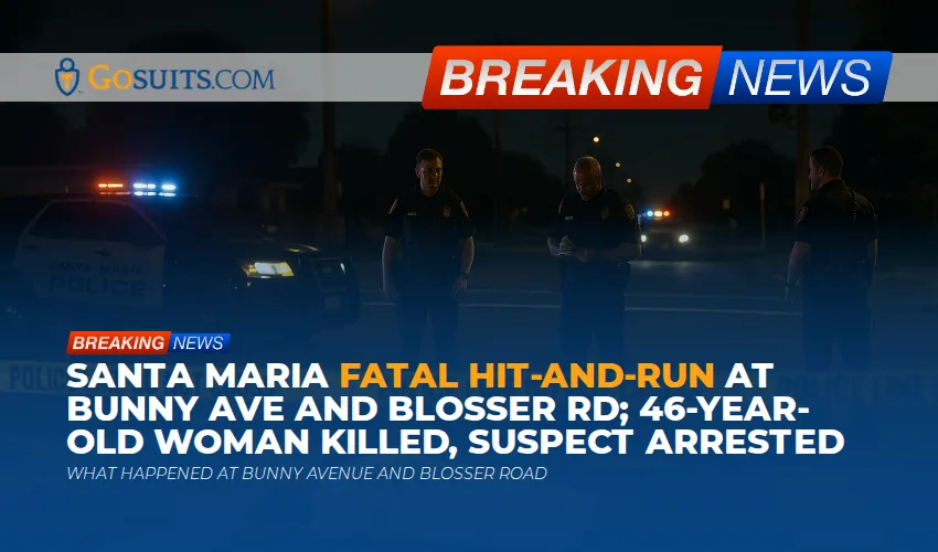 Late on Saturday night, February 21, 2026, at approximately 11:54 p.m., Santa Maria Police officers responded to a vehicle versus pedestrian collision at the intersection of Bunny Avenue and Blosser Road on the city’s west side. Emergency personnel rendered aid to a 46-year-old woman from Nipomo, but she was pronounced deceased at the scene. According to information released by Santa Maria Police and shared publicly, the driver left the scene immediately after the impact. Officers later located the suspected vehicle and made contact with a 30-year-old Santa Maria resident who was arrested and booked into the Santa Barbara County Jail on multiple felony charges.