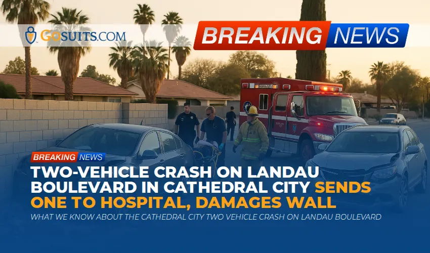 According to local reporting, a two vehicle collision in Cathedral City sent one person to the hospital with moderate injuries on Tuesday evening. Police said it happened just before 6:30 p.m. near the 30600 block of Landau Boulevard, in a residential area. After the initial impact, both vehicles continued forward and struck a nearby wall. Emergency crews evaluated multiple people at the scene. One person was transported to a local hospital, and others were treated for minor injuries on site. The cause remains under investigation, and officers have not released details about contributing factors at this time.