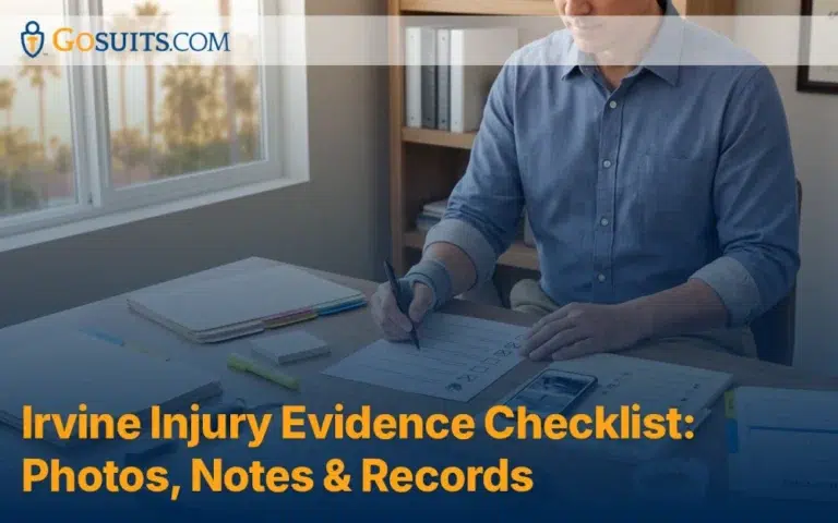 We built this Irvine injury evidence checklist to help you protect your rights after a serious incident. If your injuries stem from a vehicle crash, falls on unsafe property, or another preventable event, a free consultation with a personal injury attorney can clarify the roadmap, help prevent evidence loss, and coordinate medical and insurance communications while you focus on healing. GoSuits represents clients across California, including Irvine and Orange County, and in select jurisdictions where our team is licensed.